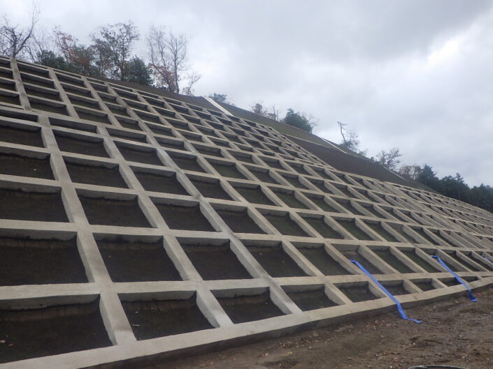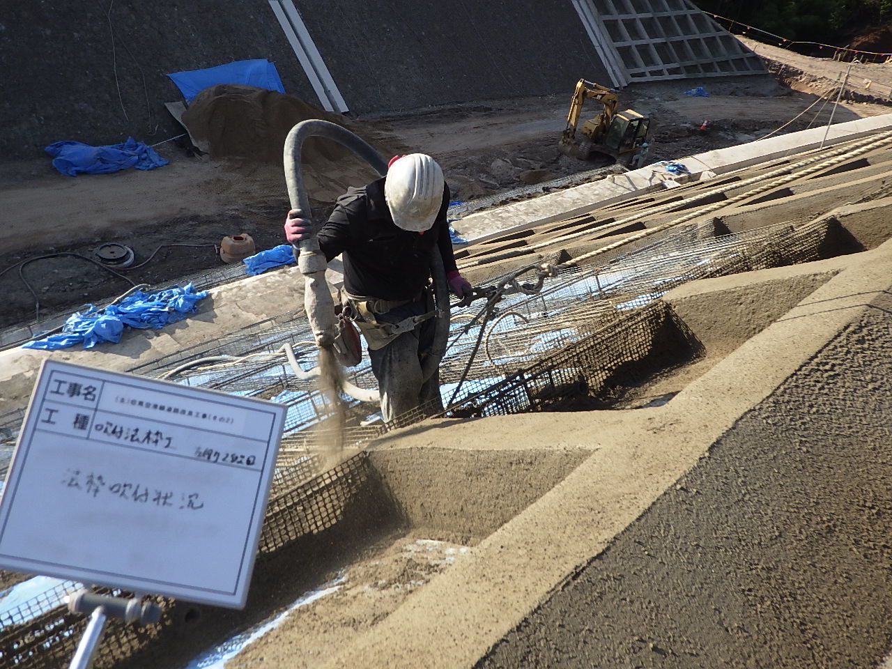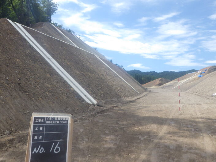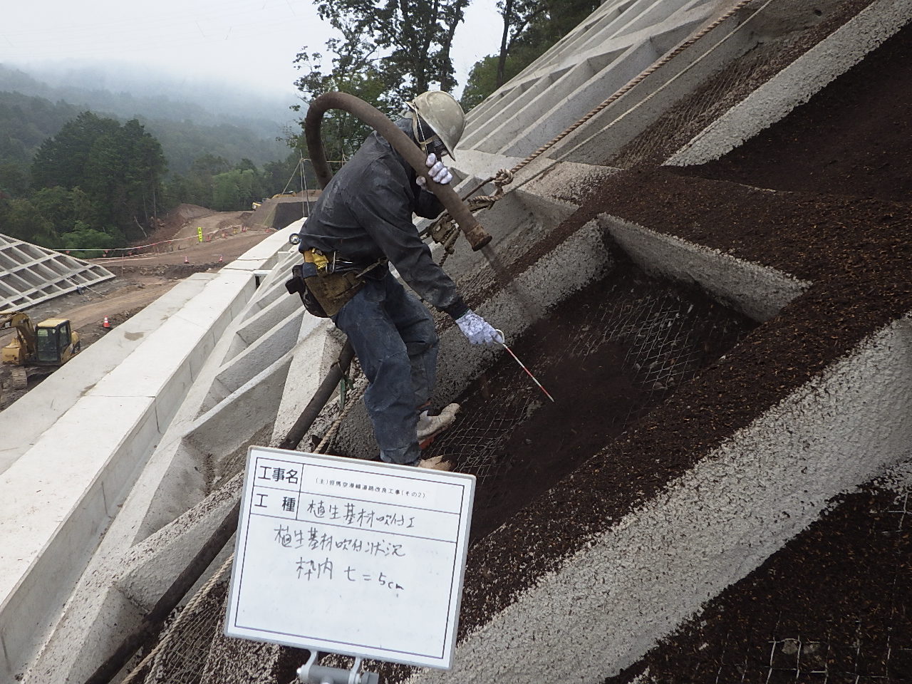 施工事例Works 法面工事:(主)但馬空港線道路改良工事(その2) Category All 39 土木工事10 鋼塗装工事(土木工事)3 砂防えん堤工事(土木工事)4 法面工事(土木工事)3 建物補修・耐震3 造園・ガーデニング0 森の小舗(景観舗装)0 エコチップ(景観舗装)1 エコロード(景観舗装)0 遮熱エコシールドK(eco塗装)3 遮熱エコシールドG(eco塗装)11 光触媒GP-Fシステム(eco塗装)0 光触媒K2コート(eco塗装)0 室内用光触媒K2コートV(eco塗装)0 不燃塗装(eco塗装)0 防汚・防腐塗装(eco塗装)0 液体ガラス(eco塗装)11 2021年1月に竣工しました (主)但馬空港線道路改良工事(その2)での法面工事です。 この工事ではICT土工を実施しました。 実施内容は、レーザースキャナーによる測量、ICT建機による法面掘削などです。 生産性向上、人手不足の解消、安全性の向上が図れました。 2年近い工事でしたが、関係者の方にはご理解とご協力をいただき無事故無災害で竣工できました。 ありがとうございます。 この事例での事業内容 法面工事 着手前 掘削・法面整形 ICT建機使用 レーザースキャナー測量 法面整形完了 法枠組立 法枠組立完了 モルタル吹付 植生工 法面工完了 完成