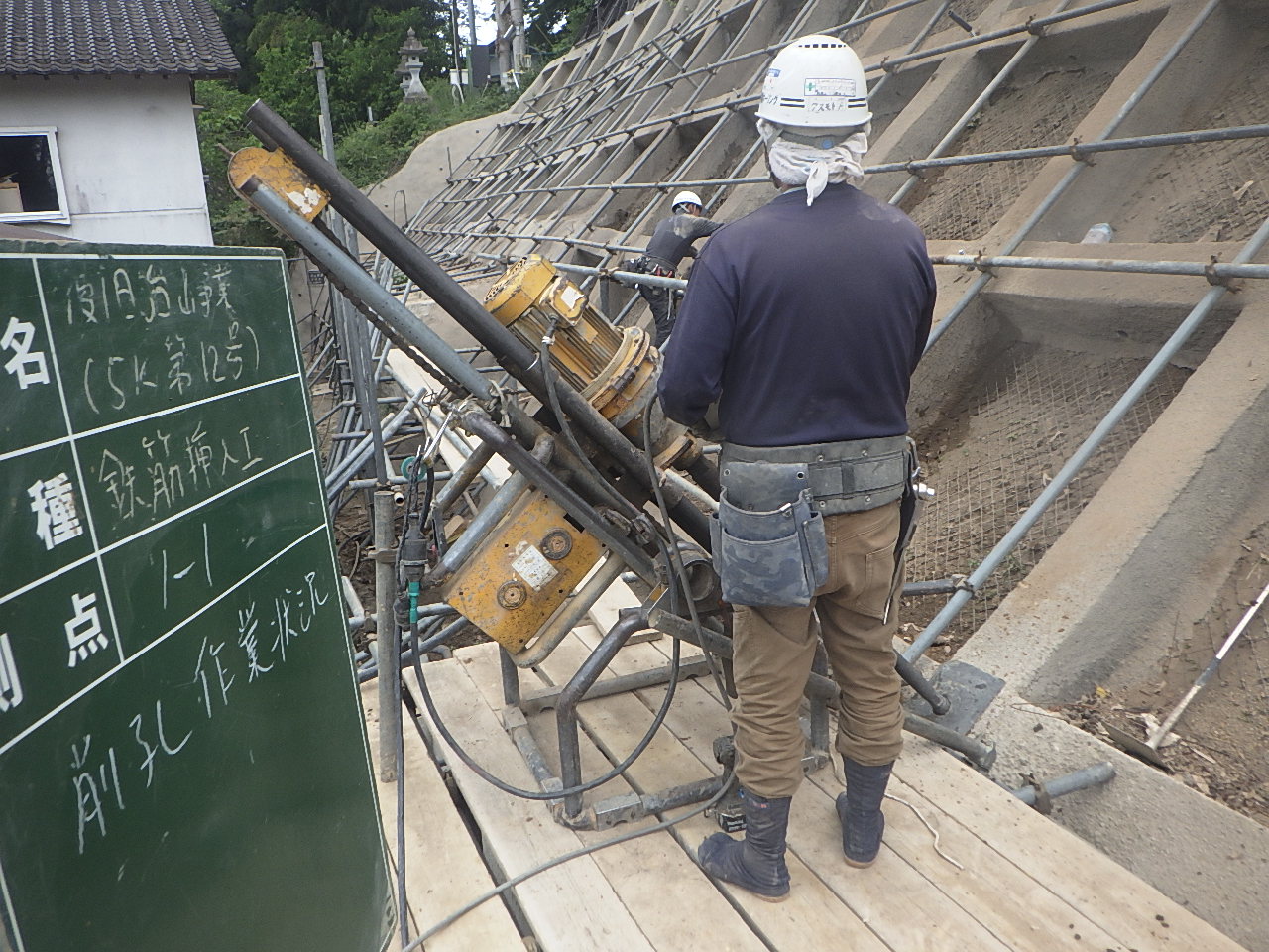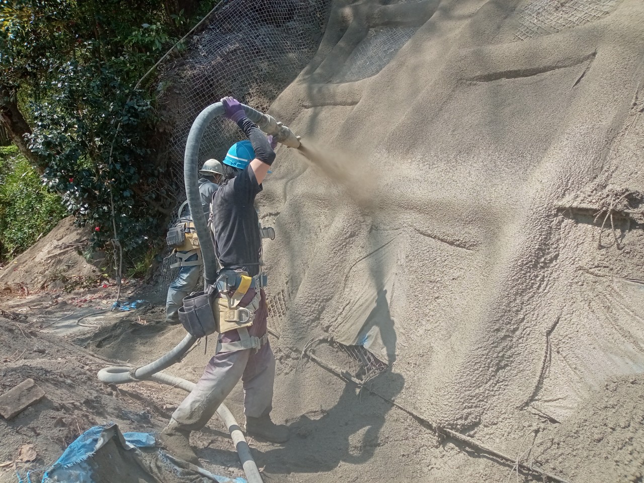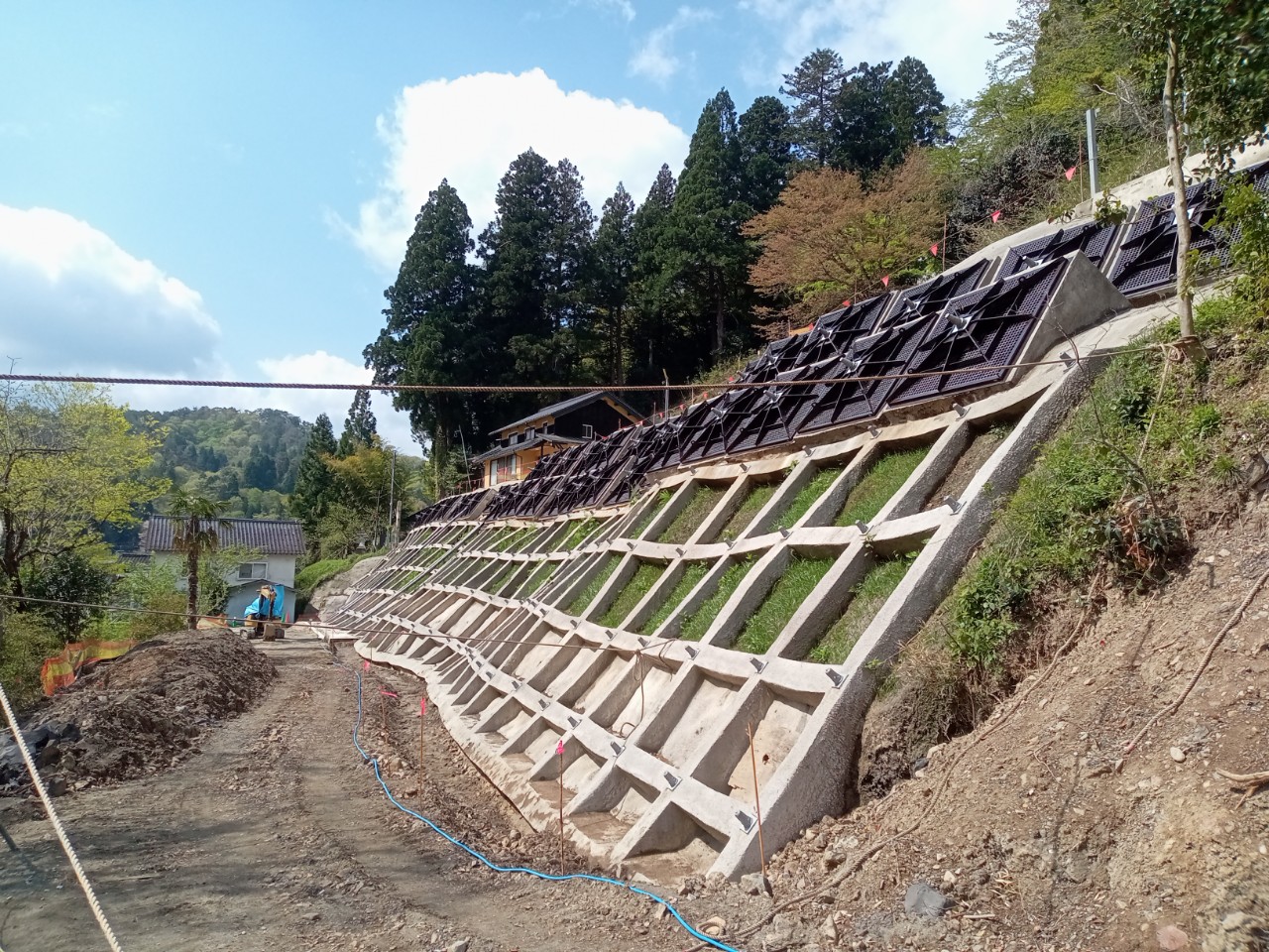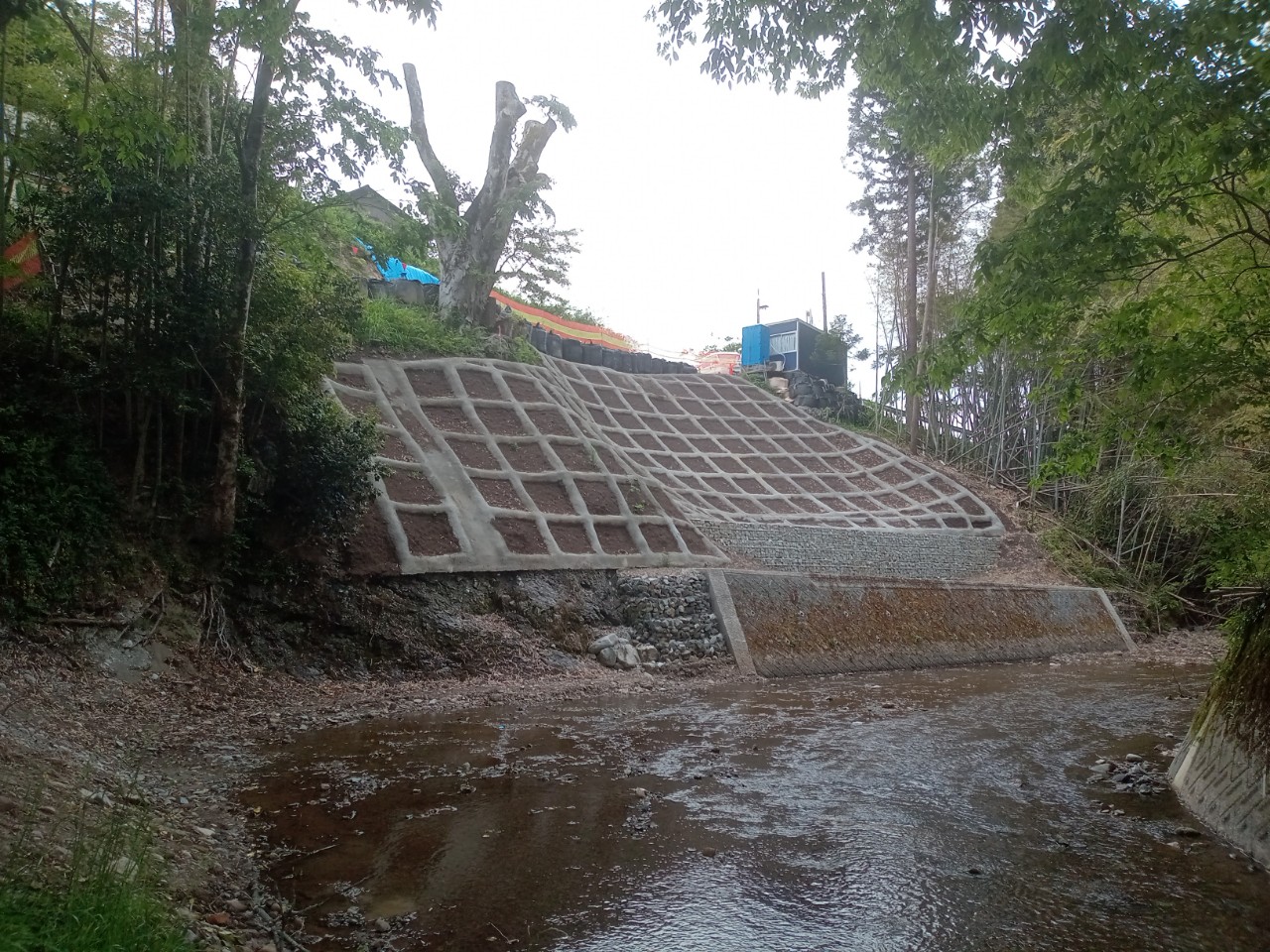 施工事例Works 法面工事:復旧治山事業(5K第12号) Category All 39 土木工事10 鋼塗装工事(土木工事)3 砂防えん堤工事(土木工事)4 法面工事(土木工事)3 建物補修・耐震3 造園・ガーデニング0 森の小舗(景観舗装)0 エコチップ(景観舗装)1 エコロード(景観舗装)0 遮熱エコシールドK(eco塗装)3 遮熱エコシールドG(eco塗装)11 光触媒GP-Fシステム(eco塗装)0 光触媒K2コート(eco塗装)0 室内用光触媒K2コートV(eco塗装)0 不燃塗装(eco塗装)0 防汚・防腐塗装(eco塗装)0 液体ガラス(eco塗装)11 2025年9月に竣工しました 復旧治山事業(5K第12号)での法面工事です。 豪雨による地盤のゆるみで亀裂が発生した斜面の安定及び地すべりを防止するための工事です。 工事期間中、地域住民の方にはご理解とご協力をいただき無事故無災害で竣工できました。 ありがとうございます。 この事例での事業内容 法面工事 着手前 法枠工・アンカー工 着手前 法枠工 モルタル吹付 アンカー工 植生工 法枠工・アンカー工完成 河川部 着手前 簡易法枠工 モルタル吹付 河川部 完成 完成