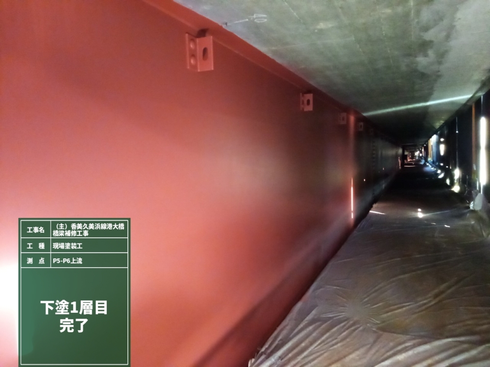 施工事例Works 鋼塗装工事:港大橋橋梁補修工事 Category All 39 土木工事10 鋼塗装工事(土木工事)3 砂防えん堤工事(土木工事)4 法面工事(土木工事)3 建物補修・耐震3 造園・ガーデニング0 森の小舗(景観舗装)0 エコチップ(景観舗装)1 エコロード(景観舗装)0 遮熱エコシールドK(eco塗装)3 遮熱エコシールドG(eco塗装)11 光触媒GP-Fシステム(eco塗装)0 光触媒K2コート(eco塗装)0 室内用光触媒K2コートV(eco塗装)0 不燃塗装(eco塗装)0 防汚・防腐塗装(eco塗装)0 液体ガラス(eco塗装)11 2022年7月に竣工しました(主)香美久美浜線 港大橋 橋梁補修工事です。 工事期間中、地域関係者の方及び通行者の方にはご理解とご協力をいただき無事故無災害で竣工できました。 ありがとうございます。 この事例での事業内容 鋼塗装工事 吊り足場組立 着手前 旧塗膜剥離 ケレン(サビ落し) ケレン完了 ジンクリッチペイント(防食塗装) 下塗1層目 下塗2層目 中塗 上塗