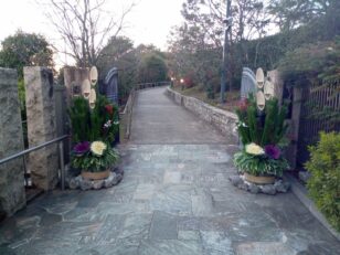 事業内容Business description 造園・ガーデニング Category All 土木工事 鋼塗装工事(土木工事) 砂防えん堤工事(土木工事) 法面工事(土木工事) 建物補修・耐震 造園・ガーデニング 森の小舗(景観舗装) エコチップ(景観舗装) エコロード(景観舗装) 遮熱エコシールドK(eco塗装) 遮熱エコシールドG(eco塗装) 光触媒GP-Fシステム(eco塗装) 光触媒K2コート(eco塗装) 室内用光触媒K2コートV(eco塗装) 不燃塗装(eco塗装) 防汚・防腐塗装(eco塗装) 液体ガラス(eco塗装) 技術・スタッフ・設備・企画・庭のデザイン、最高のスタッフがお手伝いします。時代を反映して、後世に残す仕事をします。 美しいお庭ができるまで ご相談・詳細打ち合わせ お客様の個性や雰囲気を大切にして、美しいお庭の創造と快適な住環境づくりをご提案します。 ご契約 申請手続き等、着工準備をいたします。 設計 ガーデニングパース(施工例)を作成させていただきます。 工事 お庭を整地し、デザインのとおりに石塔等の小物を設置していきます。 施工 木々や花を植えていき、庭全体のバランスをとります。 管理 いつも美しい庭を保つために、アフターメンテナンスを行います。 設計イラスト 石階段 石積、生垣 玄関アプローチ 本年もどうぞよろしくお願い致します。 新年を祝う日本の伝統的な飾りである門松を製作しました。