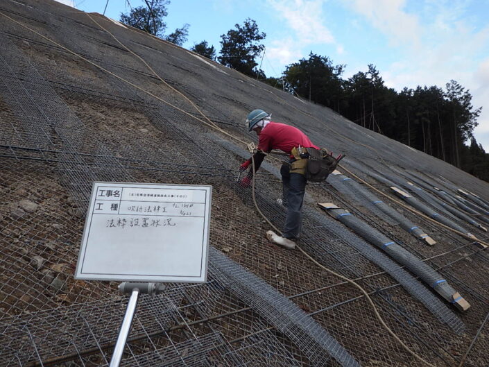 施工事例Works 法面工事:(主)但馬空港線道路改良工事(その2) Category All 39 土木工事10 鋼塗装工事(土木工事)3 砂防えん堤工事(土木工事)4 法面工事(土木工事)3 建物補修・耐震3 造園・ガーデニング0 森の小舗(景観舗装)0 エコチップ(景観舗装)1 エコロード(景観舗装)0 遮熱エコシールドK(eco塗装)3 遮熱エコシールドG(eco塗装)11 光触媒GP-Fシステム(eco塗装)0 光触媒K2コート(eco塗装)0 室内用光触媒K2コートV(eco塗装)0 不燃塗装(eco塗装)0 防汚・防腐塗装(eco塗装)0 液体ガラス(eco塗装)11 2021年1月に竣工しました (主)但馬空港線道路改良工事(その2)での法面工事です。 この工事ではICT土工を実施しました。 実施内容は、レーザースキャナーによる測量、ICT建機による法面掘削などです。 生産性向上、人手不足の解消、安全性の向上が図れました。 2年近い工事でしたが、関係者の方にはご理解とご協力をいただき無事故無災害で竣工できました。 ありがとうございます。 この事例での事業内容 法面工事 着手前 掘削・法面整形 ICT建機使用 レーザースキャナー測量 法面整形完了 法枠組立 法枠組立完了 モルタル吹付 植生工 法面工完了 完成