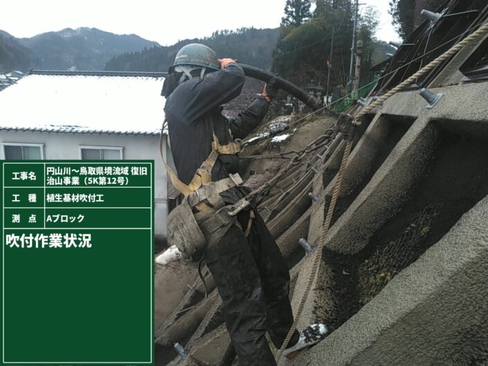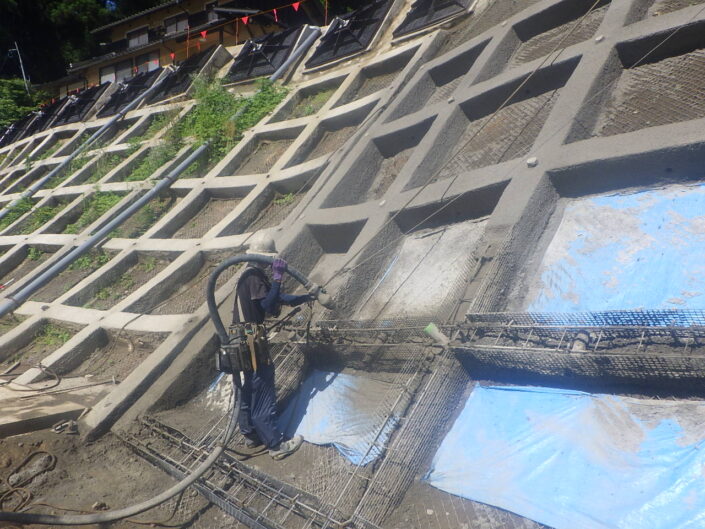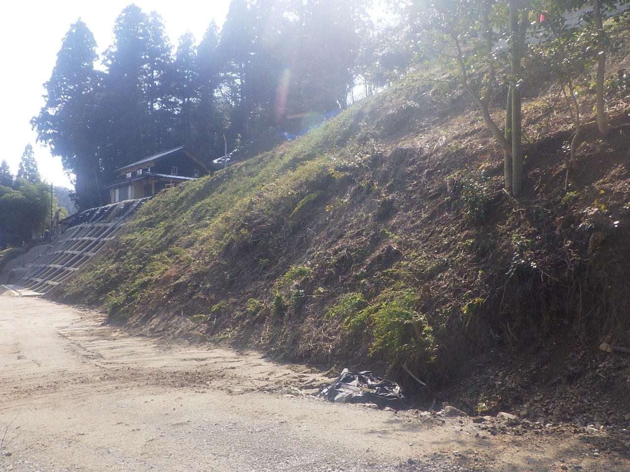 施工事例Works 法面工事:復旧治山事業(5K第12号) Category All 39 土木工事10 鋼塗装工事(土木工事)3 砂防えん堤工事(土木工事)4 法面工事(土木工事)3 建物補修・耐震3 造園・ガーデニング0 森の小舗(景観舗装)0 エコチップ(景観舗装)1 エコロード(景観舗装)0 遮熱エコシールドK(eco塗装)3 遮熱エコシールドG(eco塗装)11 光触媒GP-Fシステム(eco塗装)0 光触媒K2コート(eco塗装)0 室内用光触媒K2コートV(eco塗装)0 不燃塗装(eco塗装)0 防汚・防腐塗装(eco塗装)0 液体ガラス(eco塗装)11 2025年9月に竣工しました 復旧治山事業(5K第12号)での法面工事です。 豪雨による地盤のゆるみで亀裂が発生した斜面の安定及び地すべりを防止するための工事です。 工事期間中、地域住民の方にはご理解とご協力をいただき無事故無災害で竣工できました。 ありがとうございます。 この事例での事業内容 法面工事 着手前 法枠工・アンカー工 着手前 法枠工 モルタル吹付 アンカー工 植生工 法枠工・アンカー工完成 河川部 着手前 簡易法枠工 モルタル吹付 河川部 完成 完成