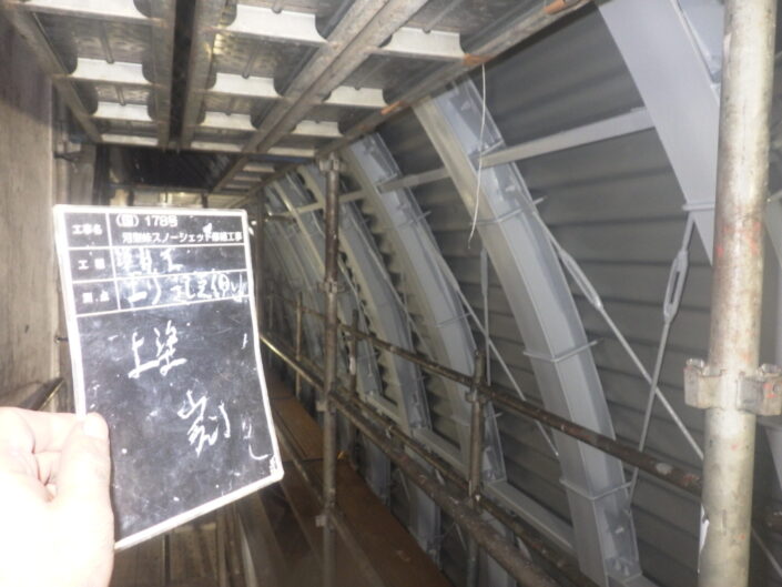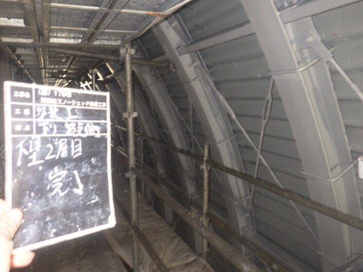 施工事例Works (国)178号 河梨峠スノーシェッド修繕工事 Category All 40 土木工事11 鋼塗装工事(土木工事)4 砂防えん堤工事(土木工事)4 法面工事(土木工事)3 建物補修・耐震3 造園・ガーデニング0 森の小舗(景観舗装)0 エコチップ(景観舗装)1 エコロード(景観舗装)0 遮熱エコシールドK(eco塗装)3 遮熱エコシールドG(eco塗装)11 光触媒GP-Fシステム(eco塗装)0 光触媒K2コート(eco塗装)0 室内用光触媒K2コートV(eco塗装)0 不燃塗装(eco塗装)0 防汚・防腐塗装(eco塗装)0 液体ガラス(eco塗装)11 2026年2月に竣工しました (国)178号河梨峠スノーシェッド修繕工事です。 工事期間中、地域関係者の方々及び通行者の方にはご理解とご協力をいただき無事故無災害で竣工できました。 ありがとうございます。 この事例での事業内容 鋼塗装工事 着手前 足場組立 塗膜剥離・ケレン 塗膜剥離・ケレン完了 ジンクリッチペイント(防食塗装) 下塗1層目 下塗2層目 中塗 上塗 完成