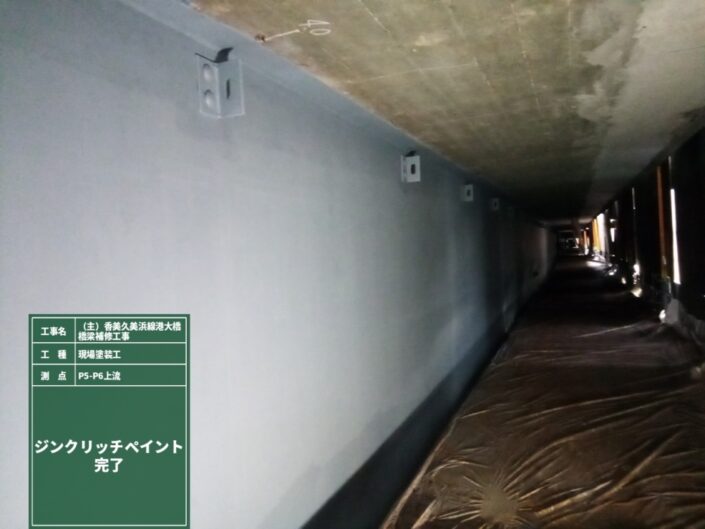 施工事例Works 鋼塗装工事:港大橋橋梁補修工事 Category All 39 土木工事10 鋼塗装工事(土木工事)3 砂防えん堤工事(土木工事)4 法面工事(土木工事)3 建物補修・耐震3 造園・ガーデニング0 森の小舗(景観舗装)0 エコチップ(景観舗装)1 エコロード(景観舗装)0 遮熱エコシールドK(eco塗装)3 遮熱エコシールドG(eco塗装)11 光触媒GP-Fシステム(eco塗装)0 光触媒K2コート(eco塗装)0 室内用光触媒K2コートV(eco塗装)0 不燃塗装(eco塗装)0 防汚・防腐塗装(eco塗装)0 液体ガラス(eco塗装)11 2022年7月に竣工しました(主)香美久美浜線 港大橋 橋梁補修工事です。 工事期間中、地域関係者の方及び通行者の方にはご理解とご協力をいただき無事故無災害で竣工できました。 ありがとうございます。 この事例での事業内容 鋼塗装工事 吊り足場組立 着手前 旧塗膜剥離 ケレン(サビ落し) ケレン完了 ジンクリッチペイント(防食塗装) 下塗1層目 下塗2層目 中塗 上塗